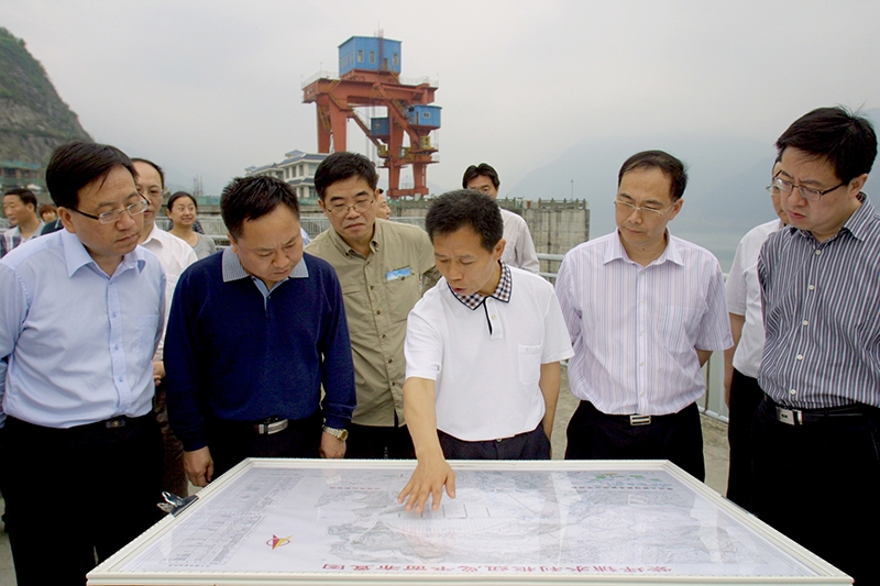 時(shí)任水利部副部長李國英(現(xiàn)任水利部部長)赴紫坪鋪水利樞紐工程檢查指導(dǎo)防汛工作